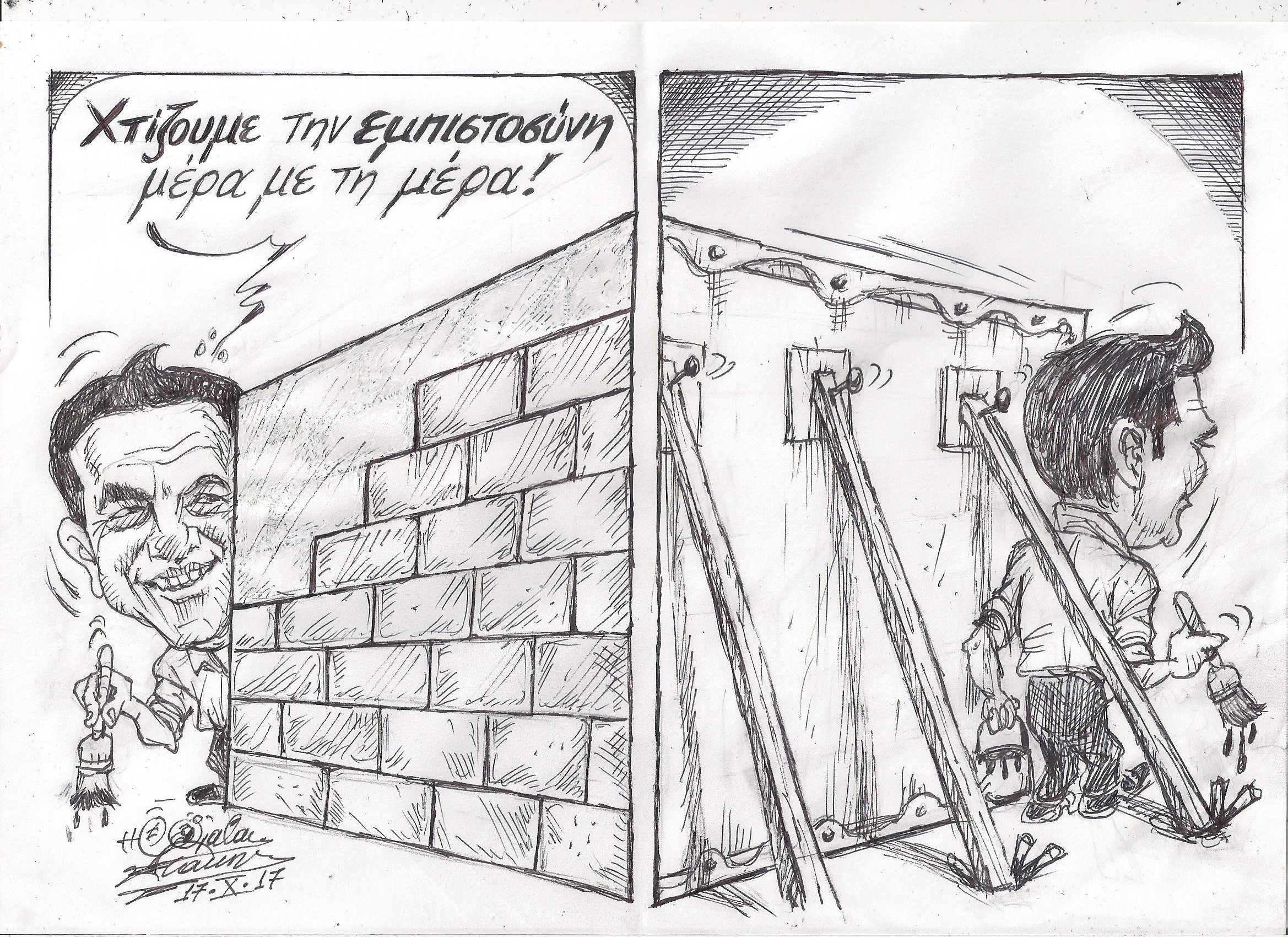 Σκίτσο του Τάκη Χάλαρη με θέμα: "Περι εμπιστορύνης"