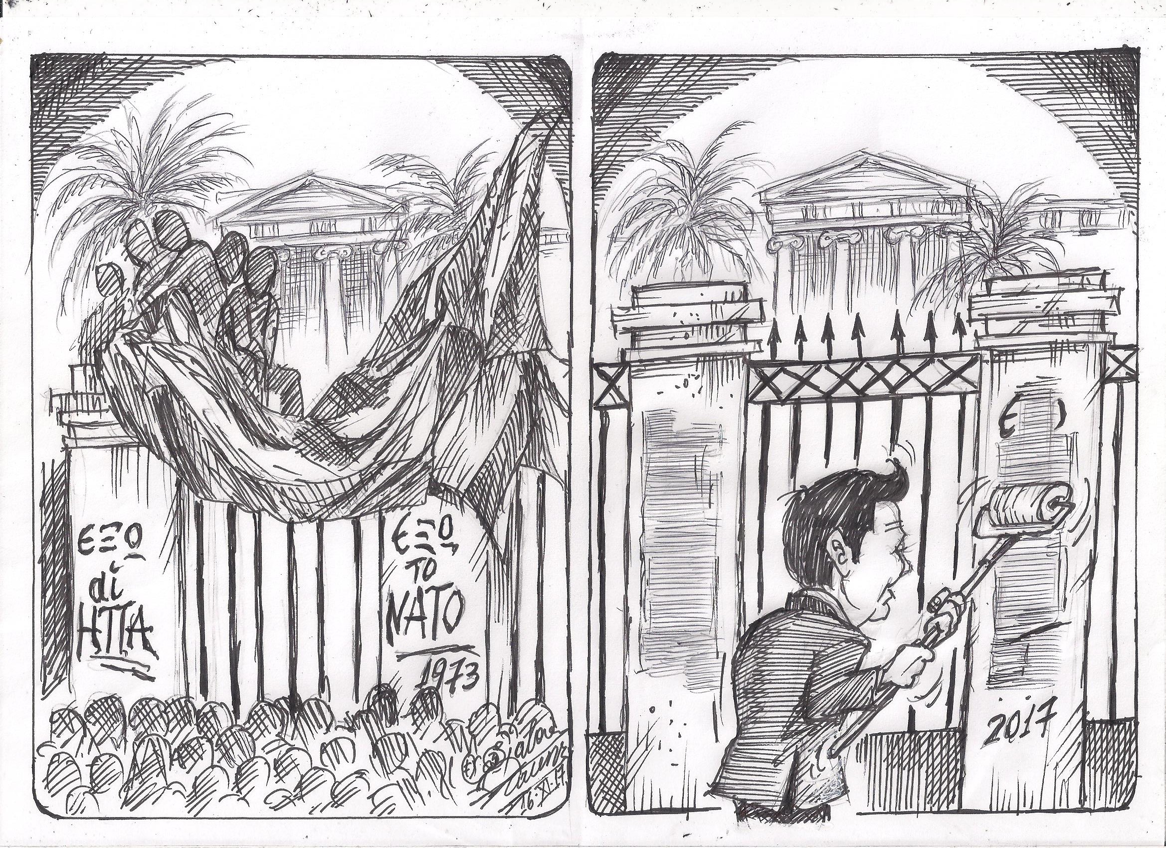 Σκίτσο του Τάκη Χάλαρη με θέμα: "Πολυτεχνείο 1973 - 2017"