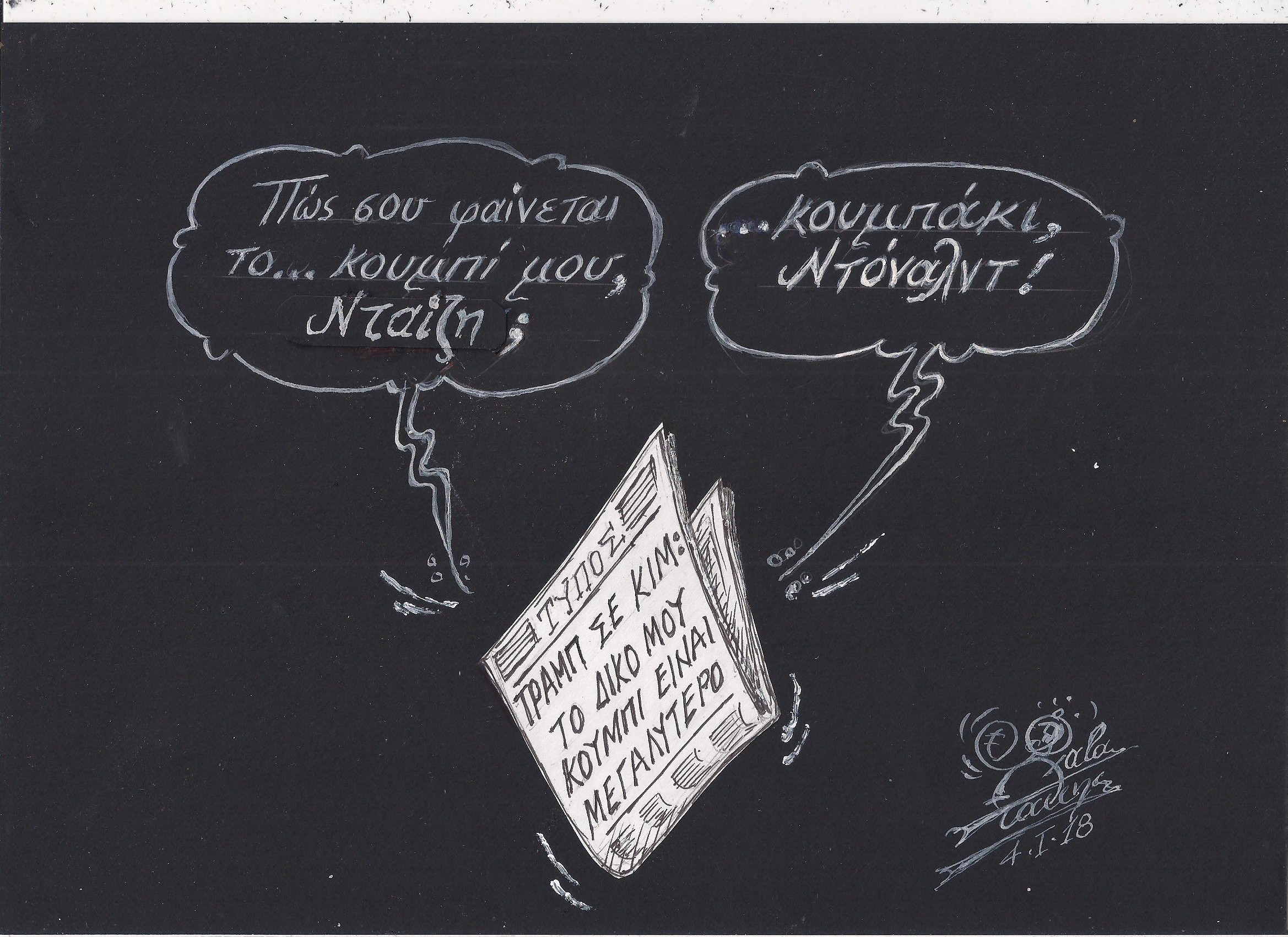 Σκίτσο του Τάκη Χάλαρη με θέμα: "Το κουμπί του Τράμπ"