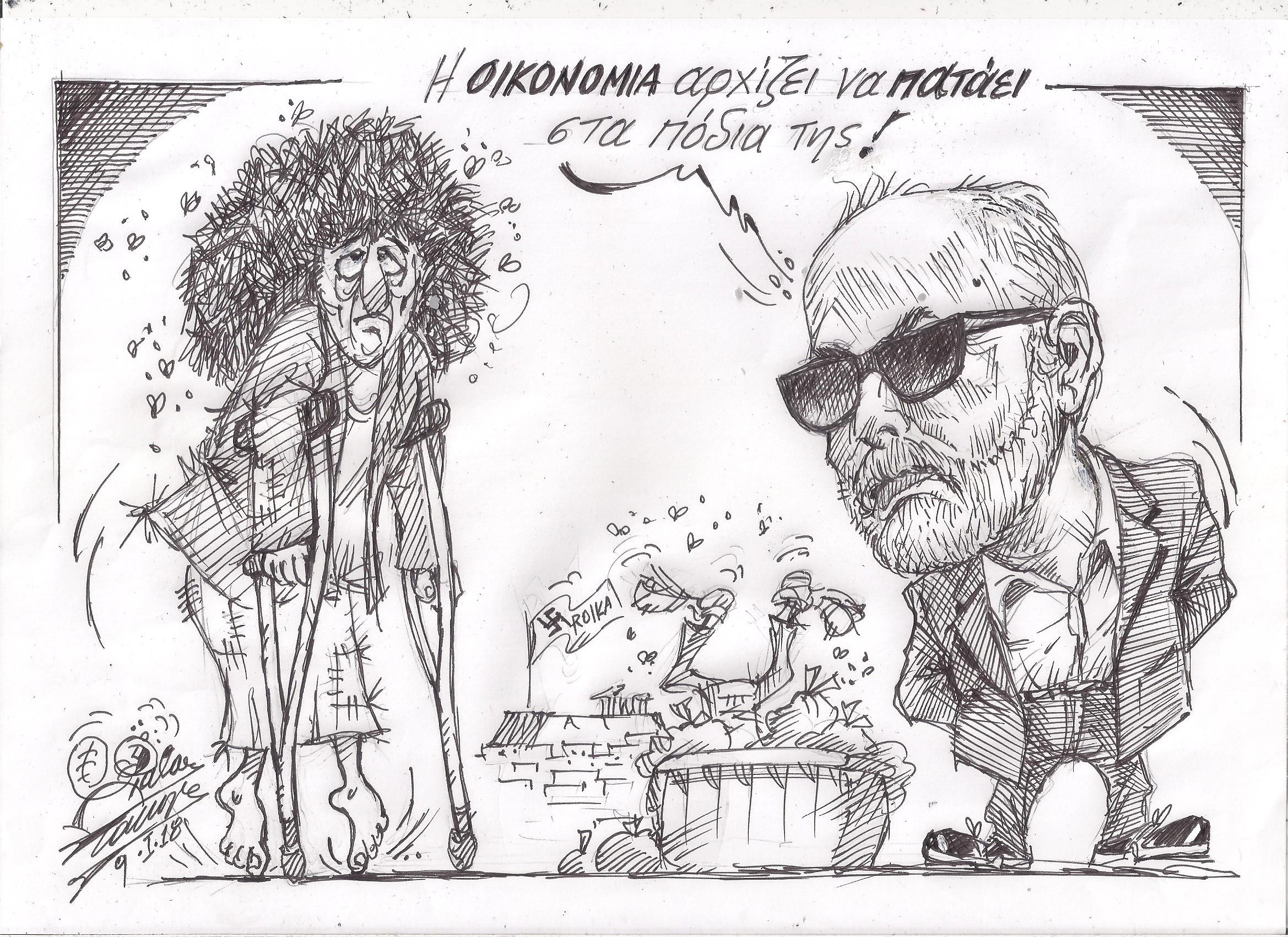 Σκίτσο του Τάκη Χάλαρη με θέμα:"Περί Οικονομίας"