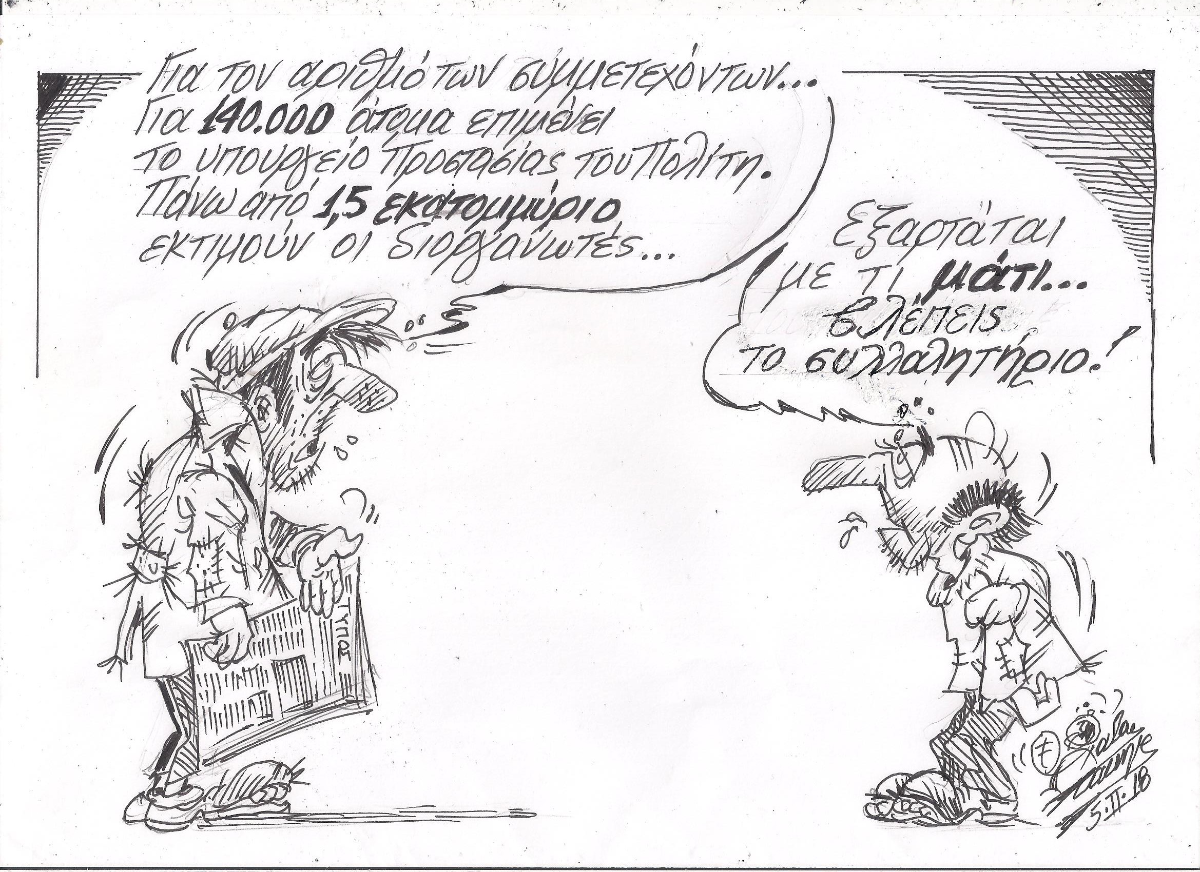 Σκίτσο του Τάκη Χάλαρη με θέμα: "Αριθμός Συμμετεχόντων"