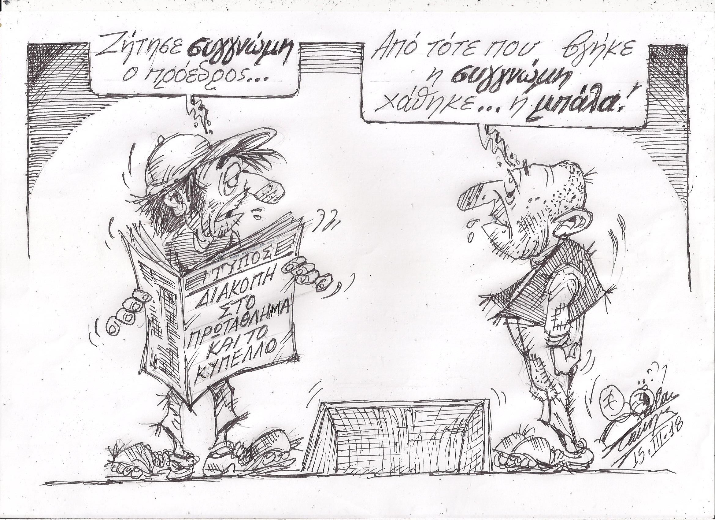 Σκίτσο του Τάκη Χάλαρη με θέμα: "Περί συγγνώμης"