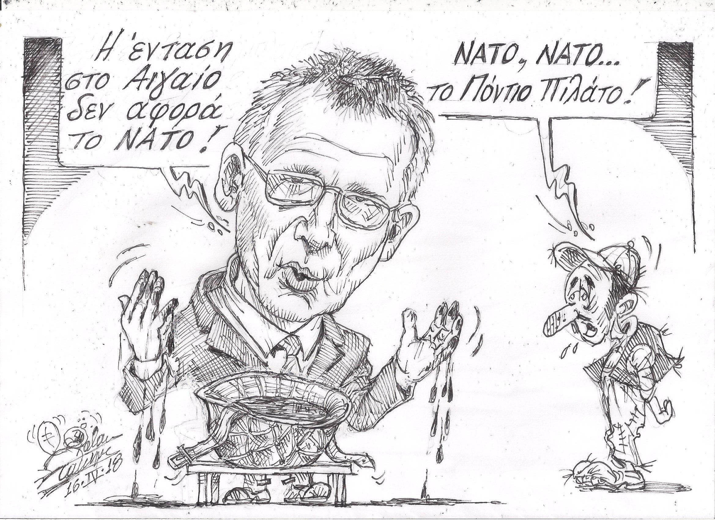 Σκίτσο του Τάκη Χάλαρη με θέμα: "Δήλωση Στολτενμπεργκ"