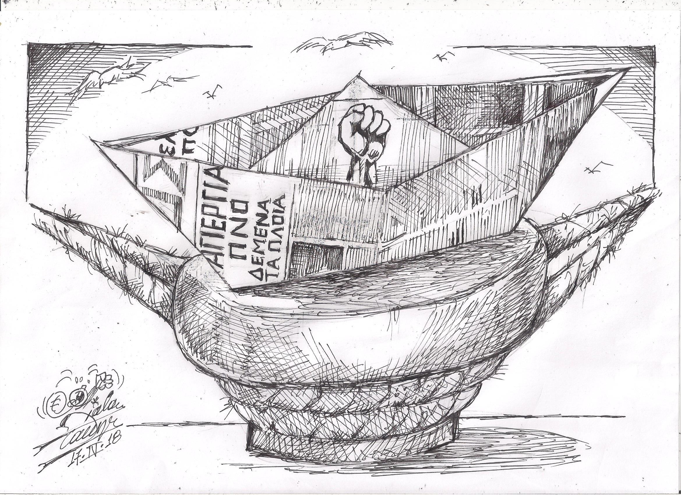 Σκίτσο του Τάκη Χάλαρη με θέμα: "Απεργία ΠΝΟ"