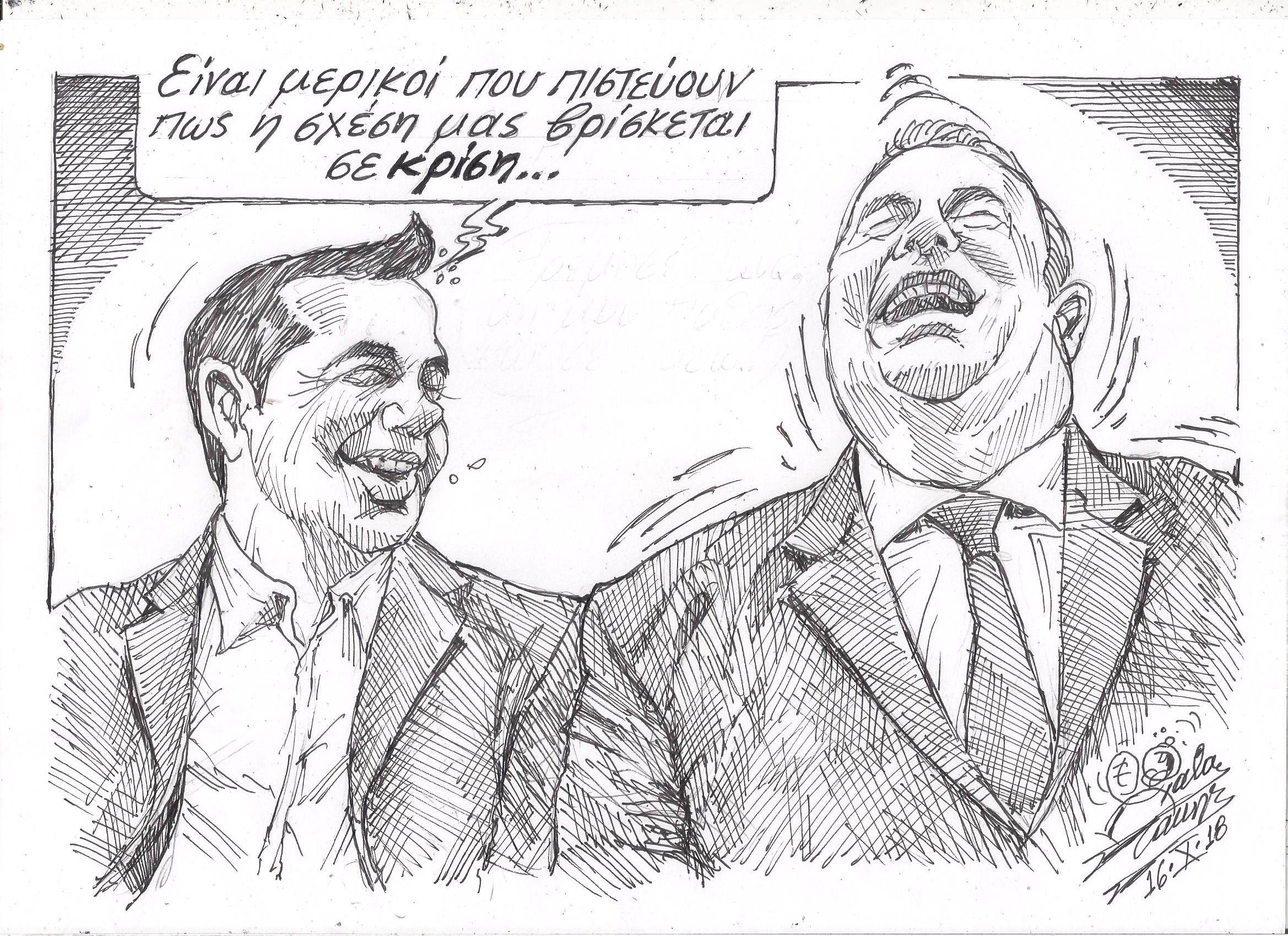 Σκίτσο του Τάκη Χάλαρη με θέμα: "Περί κρίσης"
