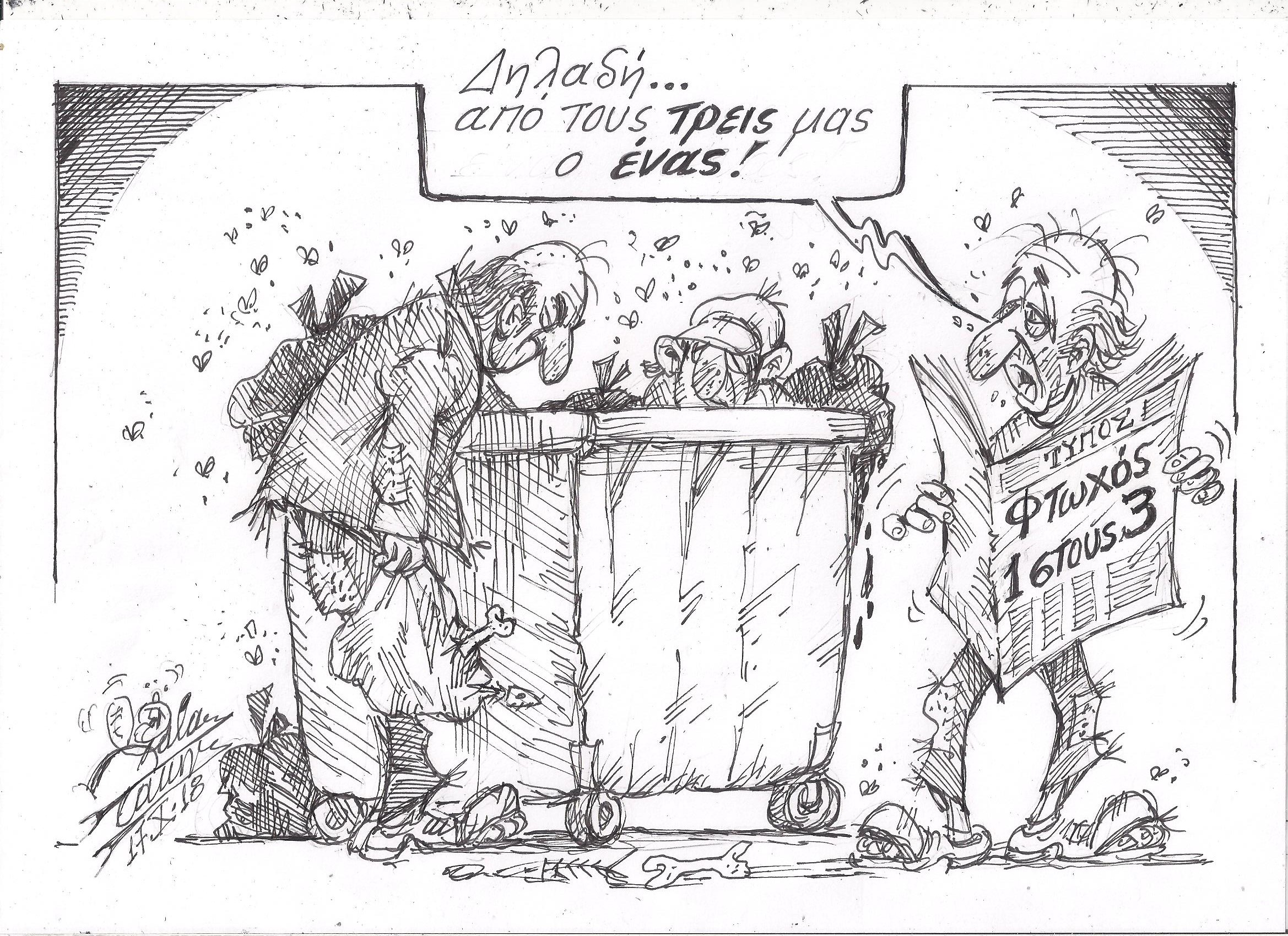Σκίτσο του Τάκη Χάλαρη με θέμα: "Ο ένας στους τρεις"