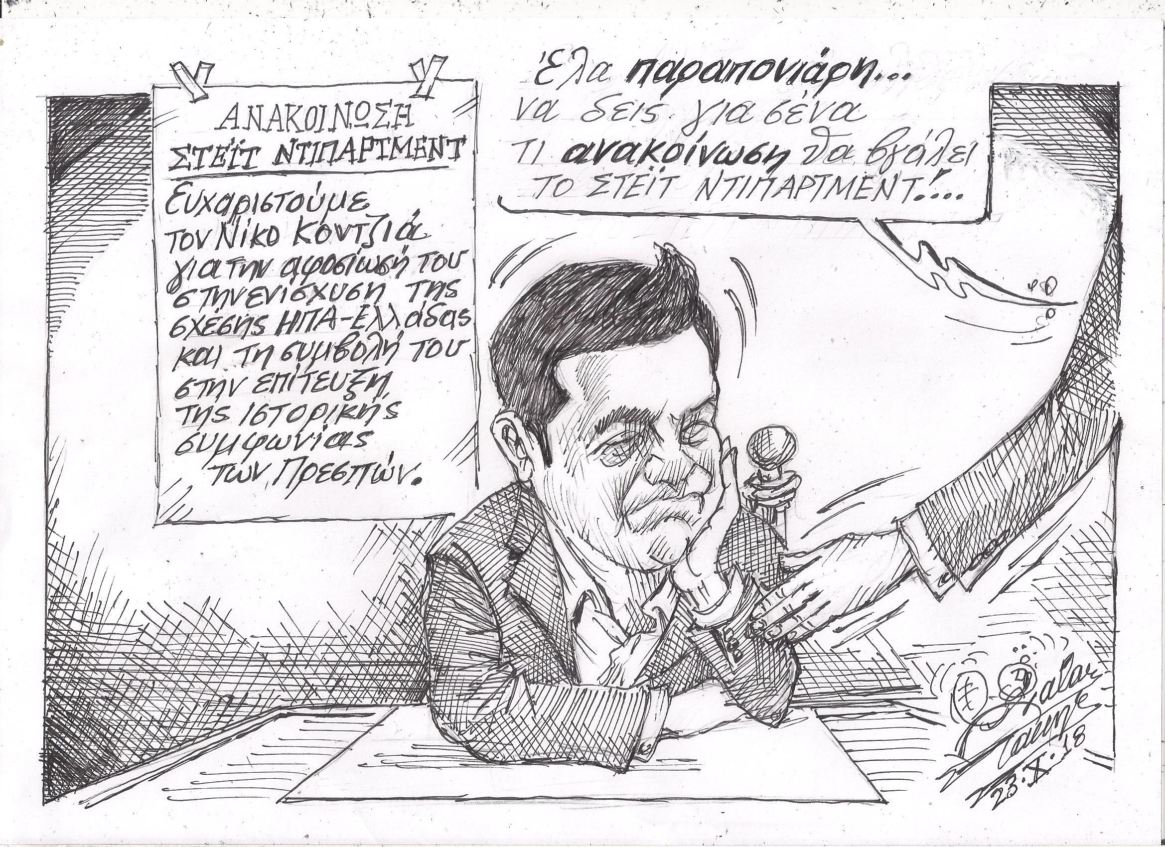 Σκίτσο του Τάκη Χάλαρη με θέμα: "Περί Ανακοίνωσης"