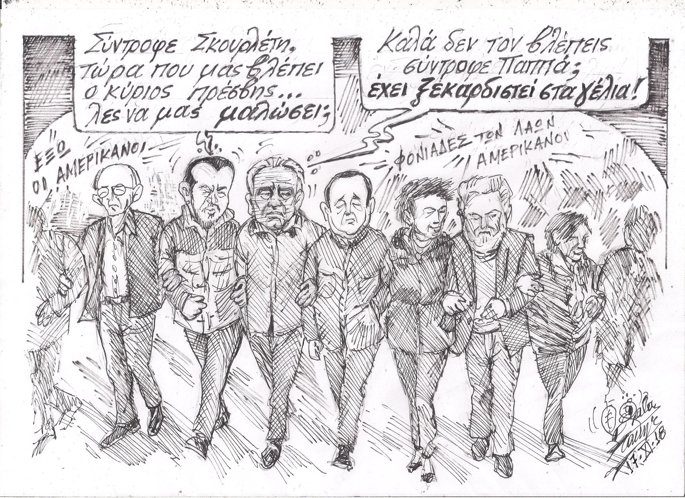 Σκίτσο του Τάκη Χάλαρη με θέμα: "Στην Πορεία"