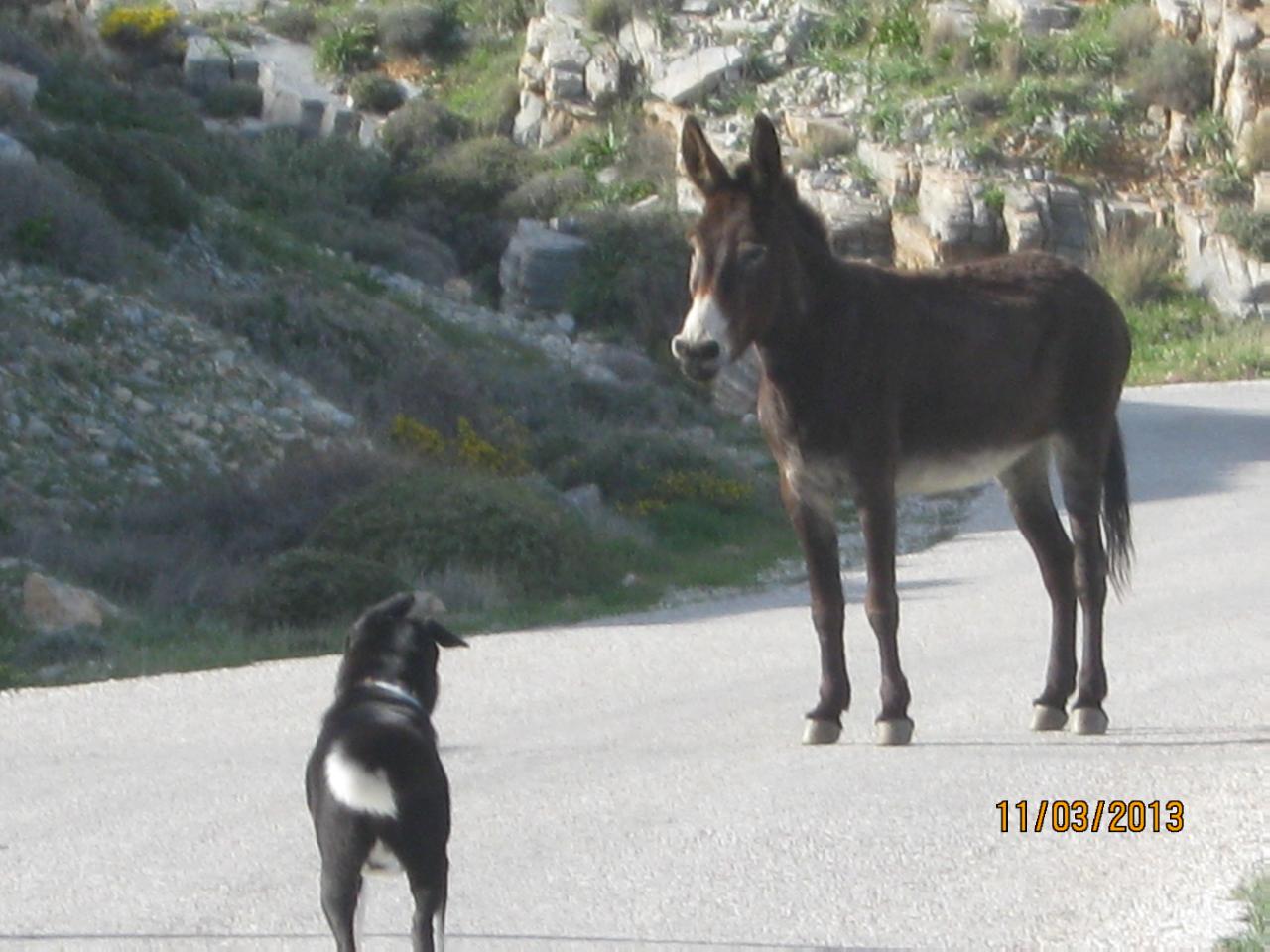 “Όχι, ο γάιδαρος του δήμου και μαζεύει τα σκουπίδια από τις πόρτες”.