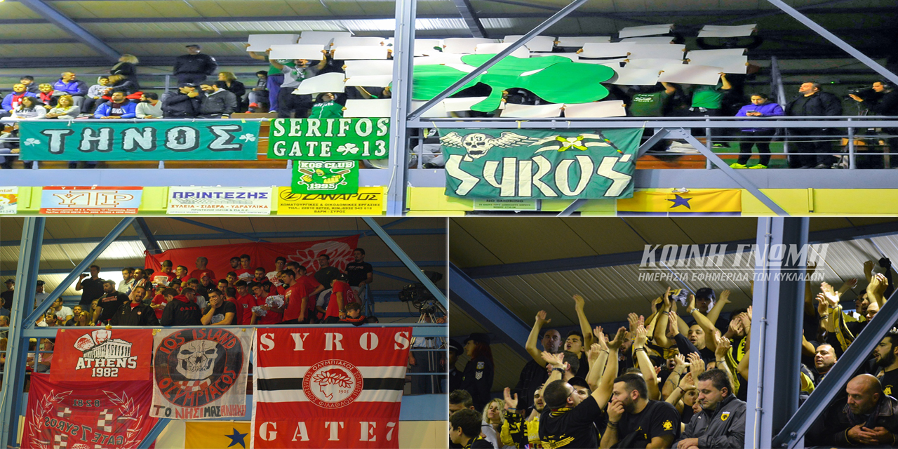 Σε παιχνίδια με μεγάλες ομάδες, όπως για παράδειγμα με Παναθηναϊκό, Ολυμπιακό και ΑΕΚ στη Β΄ κλειστή αίθουσα υπάρχουν φίλοι και των δύο ομάδων. Μέχρι εδώ όλα καλά. Από τη μία φυσιολογικό γιατί αυτές οι ομάδες έχουν φιλάθλους παντού και ειδικά όταν επισκέπτομαι μία πόλη, ένα χωριό ή ένα νησί όπως για παράδειγμα η Σύρος, οι οπαδοί των σωματείων αυτών θέλουν να βρεθούν δίπλα στην αγαπημένη τους ομάδα.