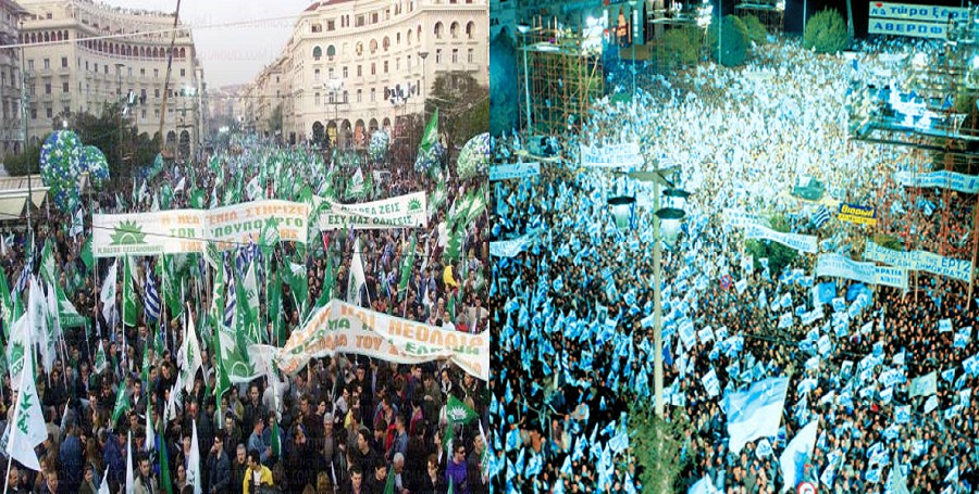 Αρχικά, στις προεκλογικές συγκεντρώσεις υπήρχε όντως κοσμοπλησμονή και η τηλεοπτική εικόνα δεν ήταν αποτέλεσμα ψηφιακής επεξεργασίας. Ακόμη και στην επαρχία, οι παππούδες, οι μπαμπάδες, έπαιρναν τα νιάνιαρα, τα έντυναν στα μπλε, στα πράσινα, στα κόκκινα, τα έβαζαν να ανεμίζουν και μία σημαία του κόμματος, που ήθελαν εκείνοι και πήγαιναν να δουν την ομιλία του πολιτικού αρχηγού, ή του βουλευτή του νομού, που τους υποσχόταν όλα εκείνα, που ήθελαν να ακούσουν.