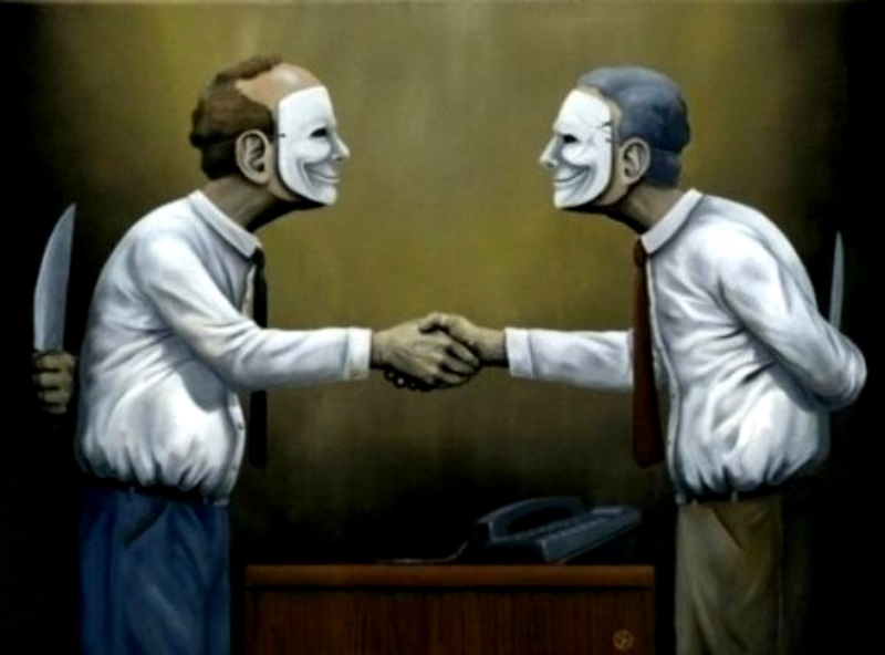 Κατά συνέπεια, οι άνθρωποι που ενώθηκαν, για παράδειγμα, με βάση την ανάγκη να εκμεταλλευτούν ο ένας τον άλλο, δεν μπορούν να συνεχίσουν για πολύ να παίζουν στο ίδιο στρατόπεδο, κοροϊδεύοντας τους εαυτούς τους, ή κανέναν άλλο. Όταν η κατασκευασμένη ροζ φούσκα της ιδανικής συνεργασίας σπάσει, σπάει με πάταγο και όχι με ένα απλό «ποπ». Ειδικά μάλιστα, όταν έχεις φροντίσει να τη δουν, να τη θαυμάσουν, να την εμπεδώσουν όλοι στο… κοινό.