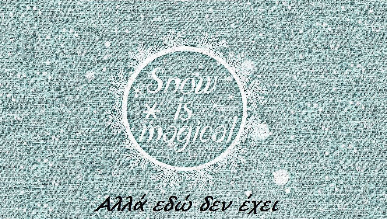 Βάζεις στην αποθήκη το φτυάρι. Ξεπακετάρεις τα φάρμακα, τρως τις κονσέρβες, πίνεις τα νερά και τους χυμούς, κατεβάζεις αμάσητες όλες τις σοκολάτες από την κατάθλιψη, ακούγοντας το Let It Snow σε εκτέλεση του Frank Sinatra, αγκαλιά με τον σκύλο του Αγίου Βερνάρδου, που τώρα δεν ξέρεις τι να τον κάνεις. Μα, όλη η χώρα μέσα στο χιόνι κι εμείς εδώ σαν τη μύγα μες το γάλα; Δεν μπορείς να το πιστέψεις. Μαζεύεις τα πάντα και αποδέχεσαι, ότι δεν πρόκειται να δεις χιόνι φέτος, γιατί μάλλον η γκαντεμιά αυτού του βράχου επηρεάζει ακόμη και τα καιρικά φαινόμενα.