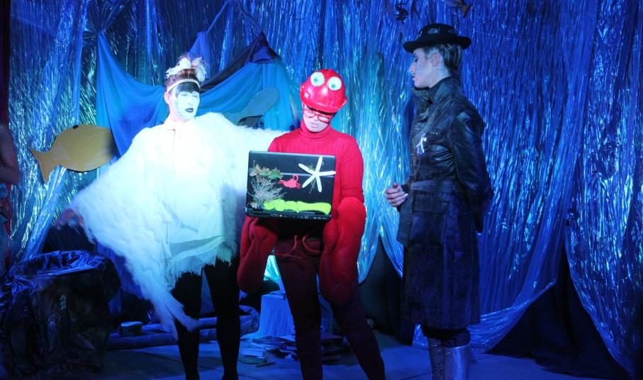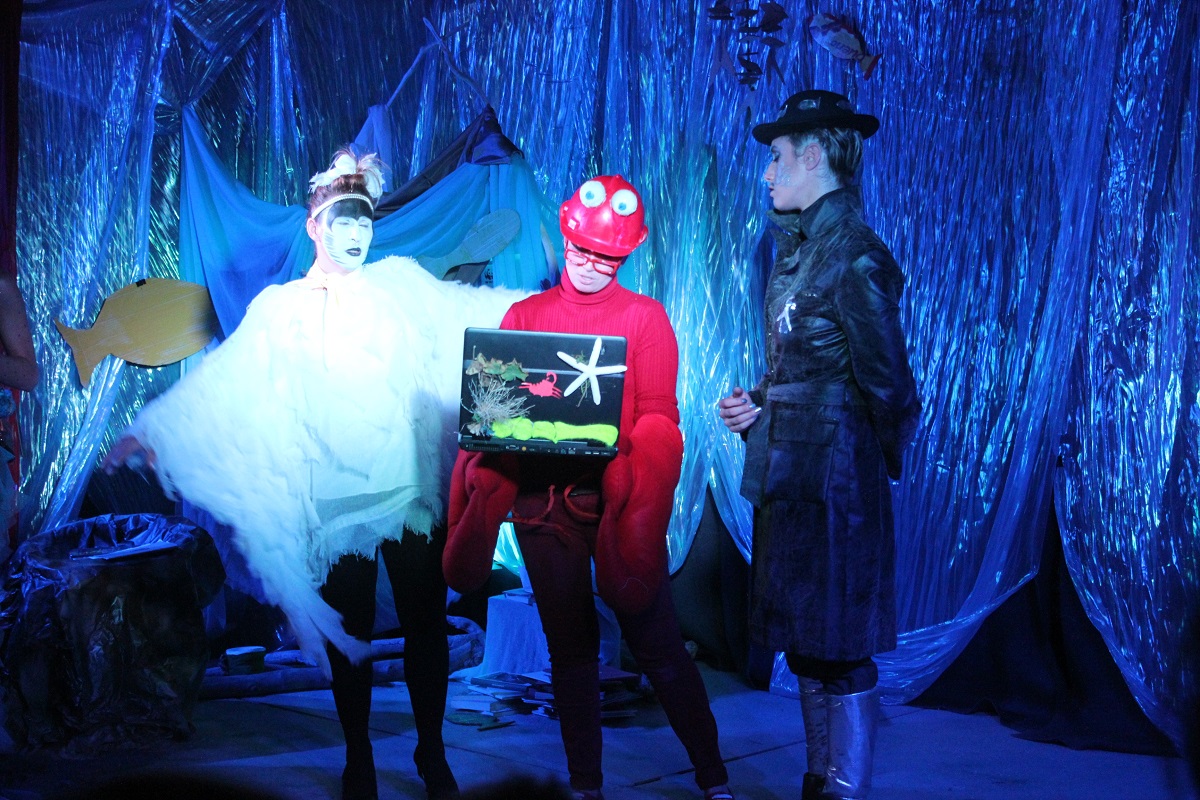 Το διαδραστικό θεατρικό δρώμενο “Χάθηκε ο Φώτης. Στοπ”, με την υπογραφή της Γεωργίας Ματσούκα παρουσιάστηκε χθες στην Πινακοθήκη Κυκλάδων όπου μικρά και μεγάλα παιδιά συνέρρευσαν για να παρακολουθήσουν ένα “υποβρύχιο” παραμύθι με πολλή φαντασία, κέφι, αλλά και μηνύματα για την αντιμετώπιση του θαλάσσιου περιβάλλοντος από τον άνθρωπο.