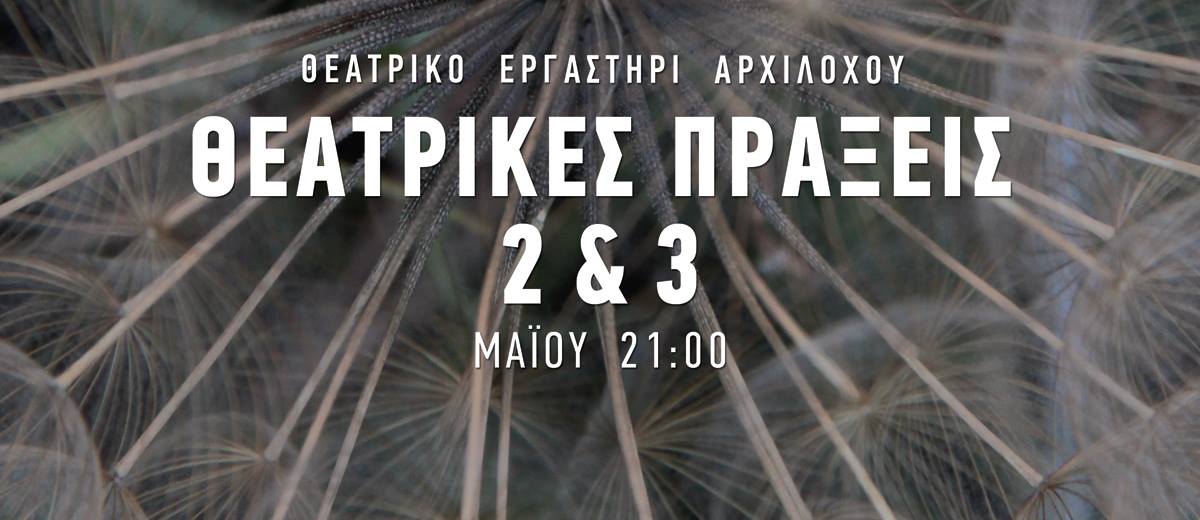Στις 2 και 3 Μαϊου στις 21:00, στην αίθουσα του Αρχιλόχου θα είμαστε όλοι εκεί για να απολαύσουμε το αποτέλεσμα μιας εξαιρετικής πρωτοβουλίας και να χειροκροτήσουμε θερμά το αποτέλεσμα των χειμωνιάτικων απογευμάτων του Αρχιλόχου.