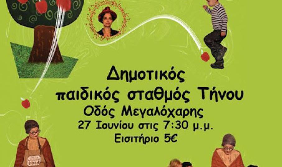 Το διαδραστικό παραμύθι “Μήλα Ζάχαρη Κανέλα” για παιδιά από 2,5 έως 6 ετών παρουσιάζουν το Σάββατο 27 Ιουνίου και ώρα 19:30 στο Δημοτικό παιδικό σταθμό Τήνου το φεστιβάλ Τήνου και το Θέατρο Φούρνος.