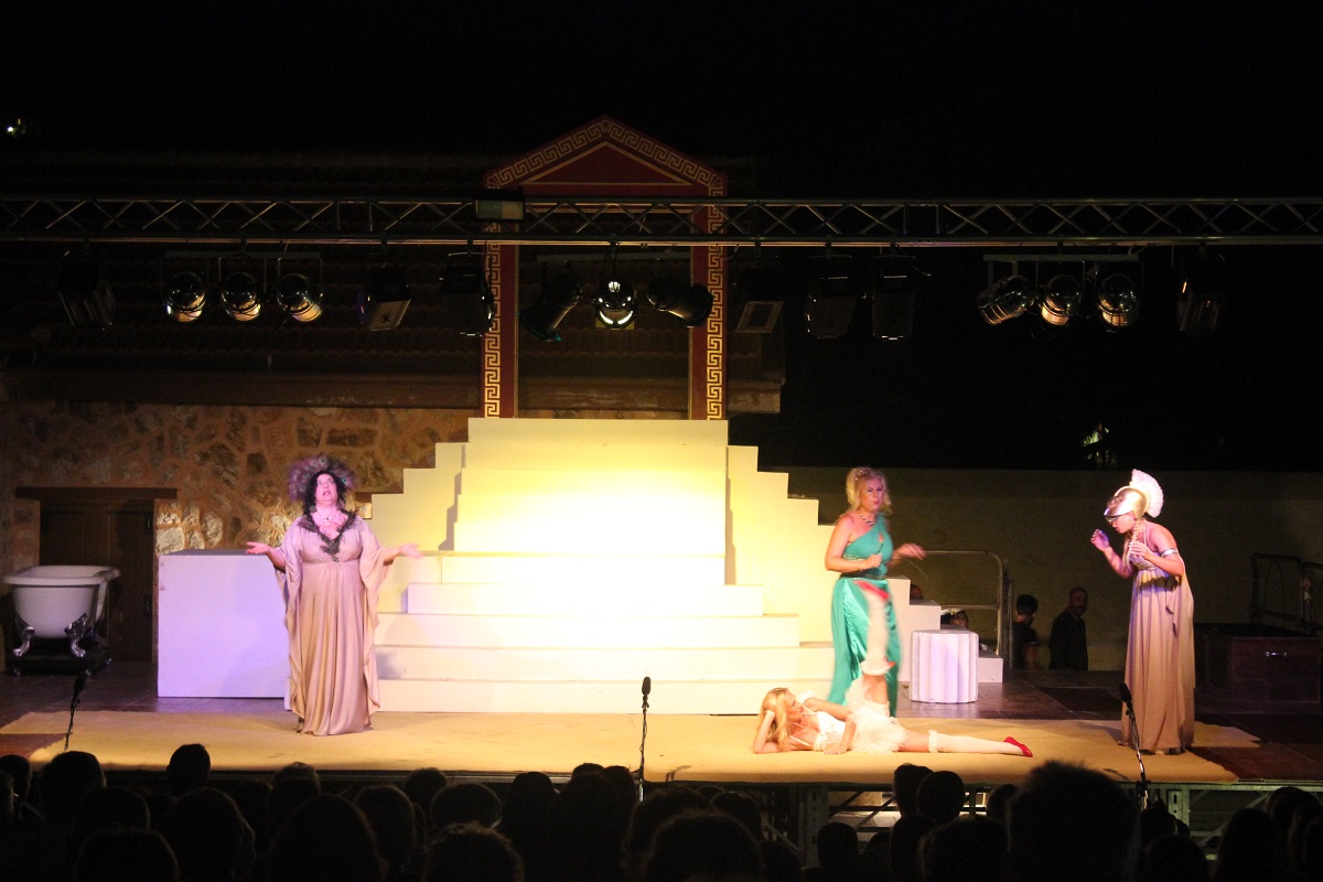 Οι παραστάσεις πραγματοποιούνται στην ειδική εξέδρα, η οποία είναι τοποθετημένη πλησίον του βοηθητικού κτιρίου. Ο «τρωικός πόλεμος» ολοκληρώνεται απόψε στις 21:00, ενώ η Ελένη, ο Πάρης, η Πευκίδα, οι Θεές, οι Τρώες και οι Έλληνες θα αναμετρηθούν και πάλι την επόμενη εβδομάδα στο πρώτο τους «σπίτι», το Θέατρο Απόλλων από 2 έως 5 Αυγούστου.