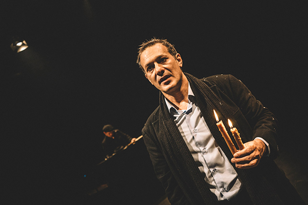 Ο Θανάσης Σαράντος ως αφηγητής, ερμηνεύει μια περσόνα του Παπαδιαμάντη, αυτή του αφηγητή που κρυφοκοιτάζει τη δράση και μεταμορφώνεται σε όλα τα πρόσωπα που αφηγείται, με τη συνδρομή της μουσικής και των ήχων από τον συνθέτη Λάμπρο Πηγούνη που ερμηνεύεται ζωντανά από τον μουσικό Γιώργο Τζιαφέττα.