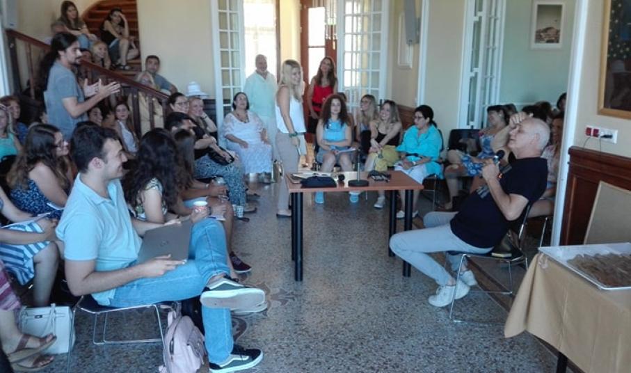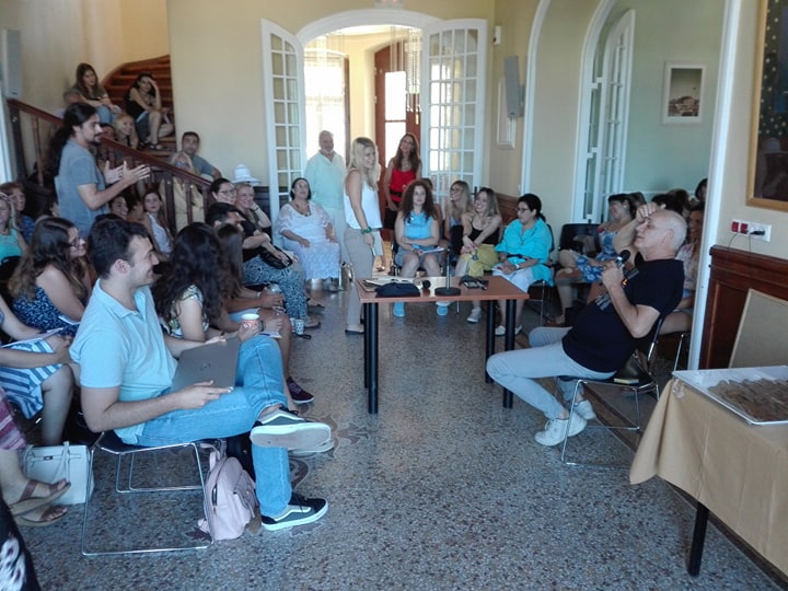 Στο σχετικό master class που διεξήχθη την Τετάρτη και την Πέμπτη στο χώρο της Έπαυλης Τσιροπινά, στην Ποσειδωνία, ο κ. Κιμούλης αναφέρθηκε στη σπουδαιότητα του διαλόγου, στον οποίο ο άνθρωπος συμμετέχει καθ’ όλη τη διάρκεια της ζωής του, με την ψυχή, το πνεύμα του, το σώμα και τις πράξεις του. Βάζει όλο τον εαυτό του στο λόγο και αυτός ο λόγος εισέρχεται στο διαλογικό ιστό της ανθρώπινης ζωής, στο παγκόσμιο συμπόσιο.