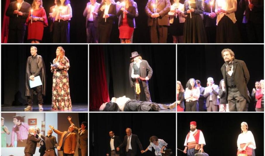 Αφιερωμένα στη μνήμη του Συριανού ηθοποιού Χρόνη Εξαρχάκου ήταν τα δύο αποσπάσματα από την ταινία του Γιάννη Δαλιανίδη «Μια κυρία στα μπουζούκια» που παρουσίασε η Θεατρική Ομάδα «Μπαστιάς». Η σπονδυλωτή παράσταση κλείνει με την ομάδα του Θεατρικού Ομίλου «Ο Σουρής» και το έργο του Μάριου Ποντίκα «Ανάσταση».