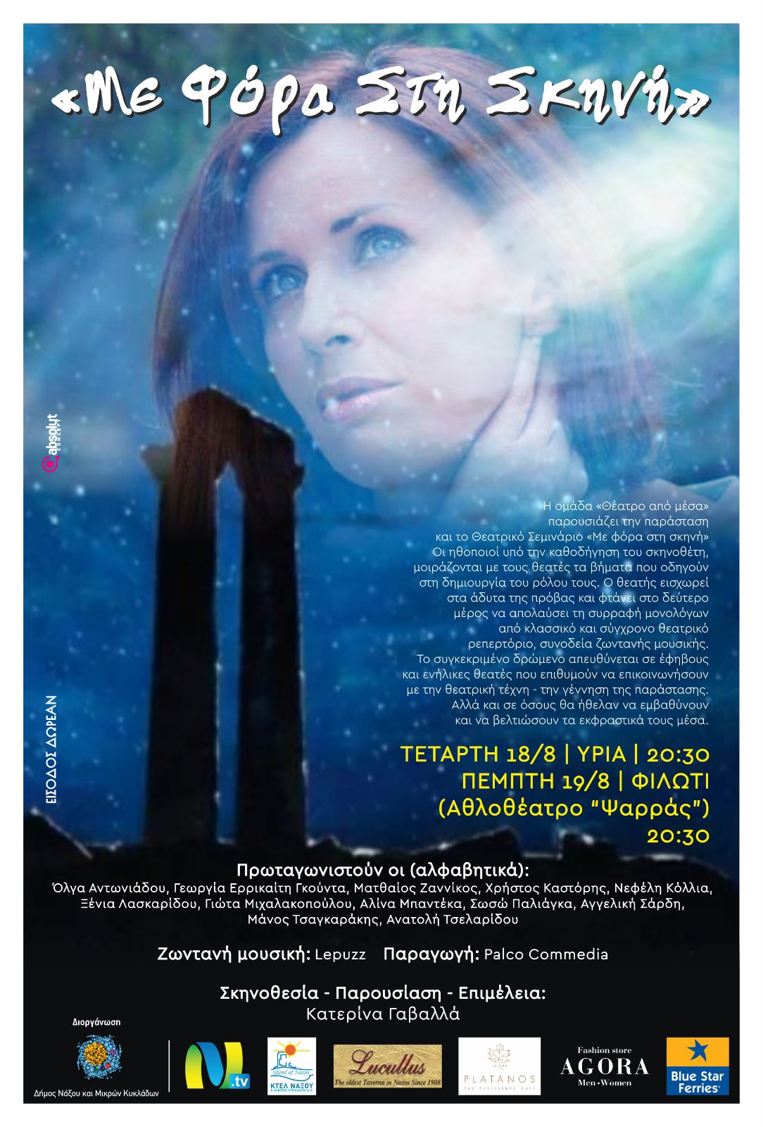 Η ομάδα "Θέατρο από μέσα" παρουσιάζει στη Νάξο την Τετάρτη 18 Αυγούστου την παράσταση και το θεατρικό σεμινάριο "Με φόρα στη σκηνή".