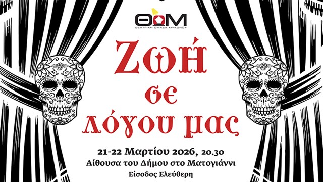 Με αφορμή την Παγκόσμια Ημέρα Θεάτρου και τη συμπλήρωση 30 χρόνων συνεχούς πορείας, η Θεατρική Ομάδα Μυκόνου σας προσκαλεί σε μια ξεχωριστή επετειακή παράσταση.