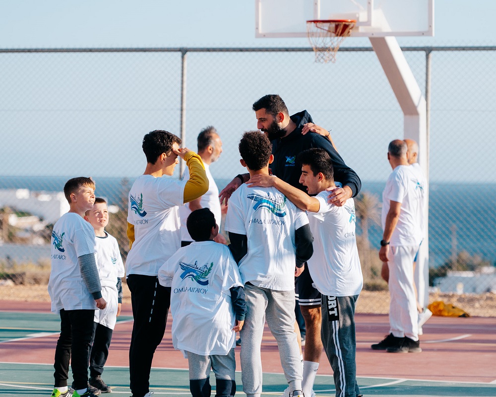 Την Τετάρτη 11 Μαΐου, στη Δονούσα, διενεργήθηκαν τα εγκαίνια του νέου γηπέδου μπάσκετ, το οποίο υλοποιήθηκε με τη συμβολή της ομάδας Αιγαίου. Στα εγκαίνια παρεβρέθη πλήθος κόσμου, ανάμεσά τους και ο μπασκετμπολίστας Γιάννης Μπουρούσης, ο οποίος δήλωσε: « Χαίρομαι πάρα πολύ που βρίσκομαι στη Δονούσα με την ομάδα Αιγαίου για να εγκαινιάσουμε αυτό το γήπεδο μπάσκετ». Στη συνέχεια, συμμετείχε σε φιλικό αγώνα με τα παιδιά. Για τα «Σουτάκια Αιγαίου» όπου οι μαθητές της Ελληνογαλλικής Σχολής Ουρσουλινών συνδέθηκαν διαδικτυακά με το νέο γήπεδο και με μαθητές του σχολείου της Δονούσας για να παίξουν μαζί, η Κατερίνα Πολυχρονοπούλου, διευθύντρια του σχολείου της Δονούσας δήλωσε: «Η δράση που πραγματοποίησε σήμερα η ομάδα Αιγαίου με τις Ουρσουλίνες ήταν πάρα πολύ ενδιαφέρουσα, τα παιδιά ενθουσιάστηκαν», επιβεβαιώνοντας το ρόλο που παίζουν τέτοιες δράσεις στη ψυχολογία των παιδιών.
