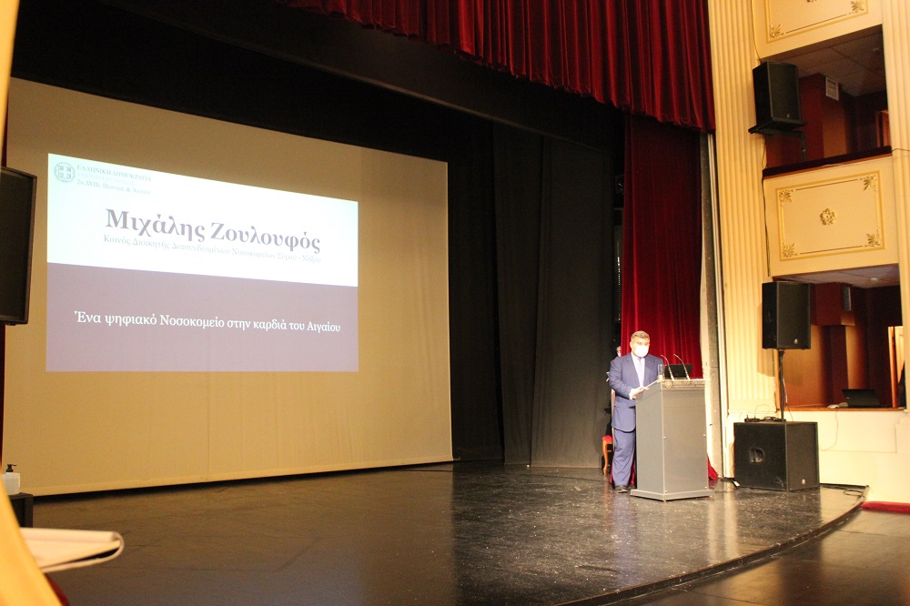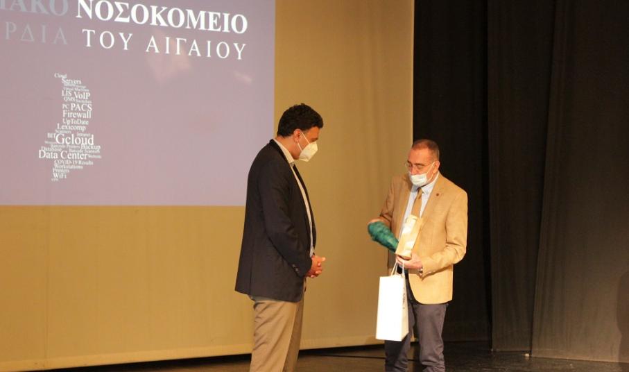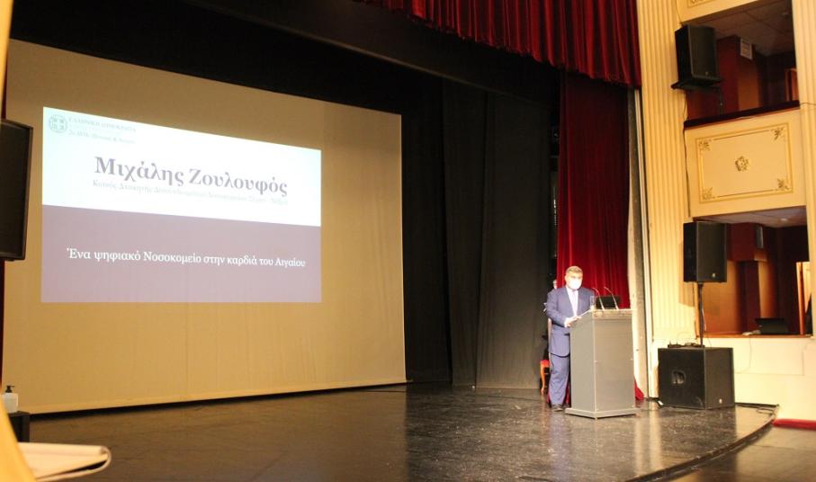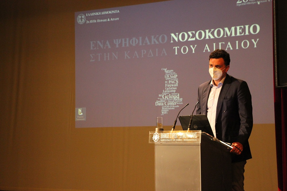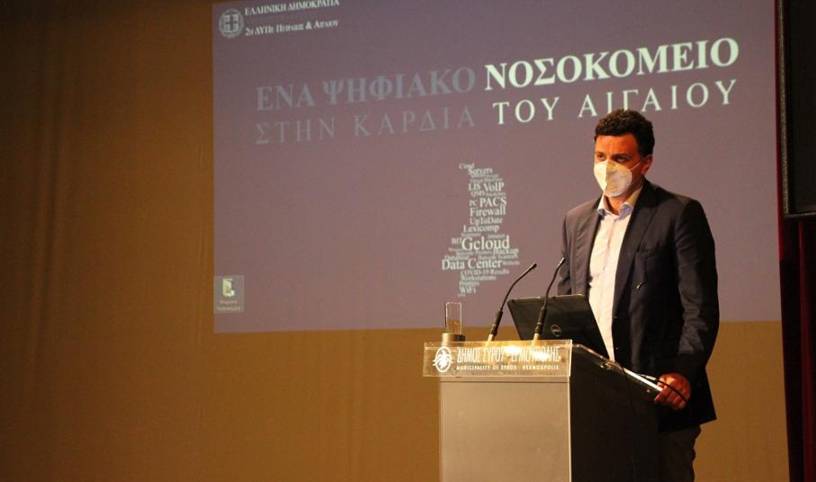 Στο πλαίσιο της εκδήλωσης στο θέατρο “Απόλλων” για την παρουσίαση του πρώτου ψηφιακού Νοσοκομείου στον Ελλαδικό χώρο και στο Αιγαίο, ο ίδιος παρακολούθησε τις λεπτομέρειες των έργων - συνολικού ύψους 1,6 εκ. ευρώ - που υλοποιήθηκαν τα τελευταία χρόνια, με αποτέλεσμα να χαρίσουν στη Νοσηλευτική δομή μία εξαιρετικά σύγχρονη λειτουργία, τα οφέλη της οποίας αποκομίζουν πρωτίστως οι πολίτες.