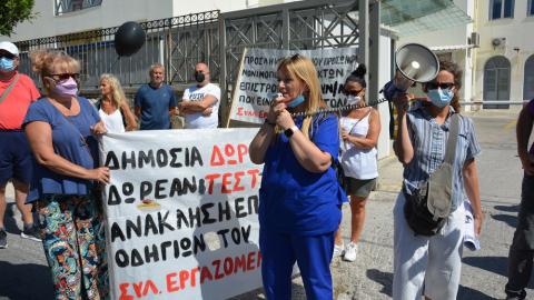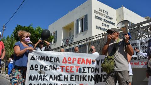 Νέα κινητοποίηση έγινε σήμερα το πρωί στο Γενικό Νοσοκομείο Σύρου με αφορμή την προγραμματισμένη επίσκεψη της Αναπληρώτριας Υπουργού Υγείας στη Σύρο, η οποία τελικά δεν πραγματοποιήθηκε λόγω δυσμενών καιρικών συνθηκών, όπως ανακοινώθηκε.