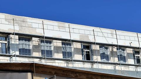 Παράλληλα, σε εξέλιξη είναι οι εργασίες για ενεργειακή αναβάθμιση του κτηρίου, η εξέλιξη των οποίων στην οροφή συγκεκριμένα, προσφάτως, είχε προκαλέσει εισροή νερού της βροχής στο εσωτερικό. Για τα παραπάνω, δίνει απαντήσεις ο κ. Λαμπρόπουλος, εξηγώντας πως οι αποξηλώσεις στην ταράτσα εν μέσω χειμώνα ήταν – χρονικά - μία άστοχη επιλογή της εργολαβίας, που σήμερα ευτυχώς, δεν επηρεάζει τους χώρους του εσωτερικά.