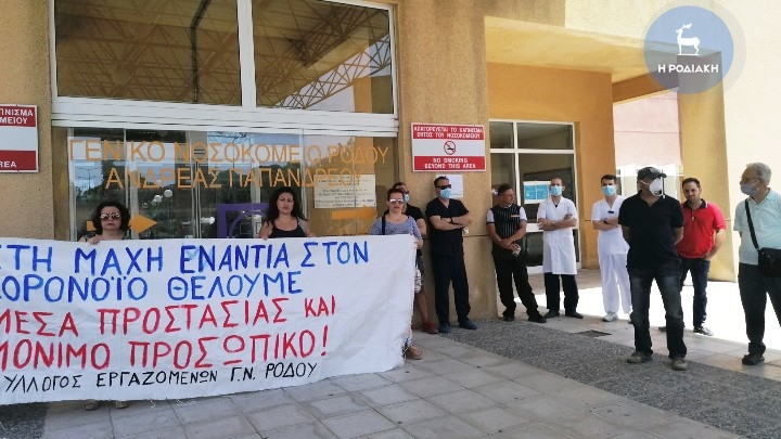 Γύρω στις 12:00 χθες το μεσημέρι, εργαζόμενοι στο Νοσηλευτικό μας Ίδρυμα, από όλους τους κλάδους, συγκεντρώθηκαν μπροστά από την είσοδο του κτιρίου και ανήρτησαν πανό. Τη συμπαράστασή τους στον αγώνα τους έδειξαν εκπρόσωποι και άλλων Συλλόγων και φορέων της περιοχής μας, όπως των Συνταξιούχων, του Εργατικού Κέντρου Ρόδου, του Σωματείου Εστιατόρων, της Λαϊκής Επιτροπής Αγώνα Νότιας Ρόδου και της Ομάδας Γυναικών Ρόδου.