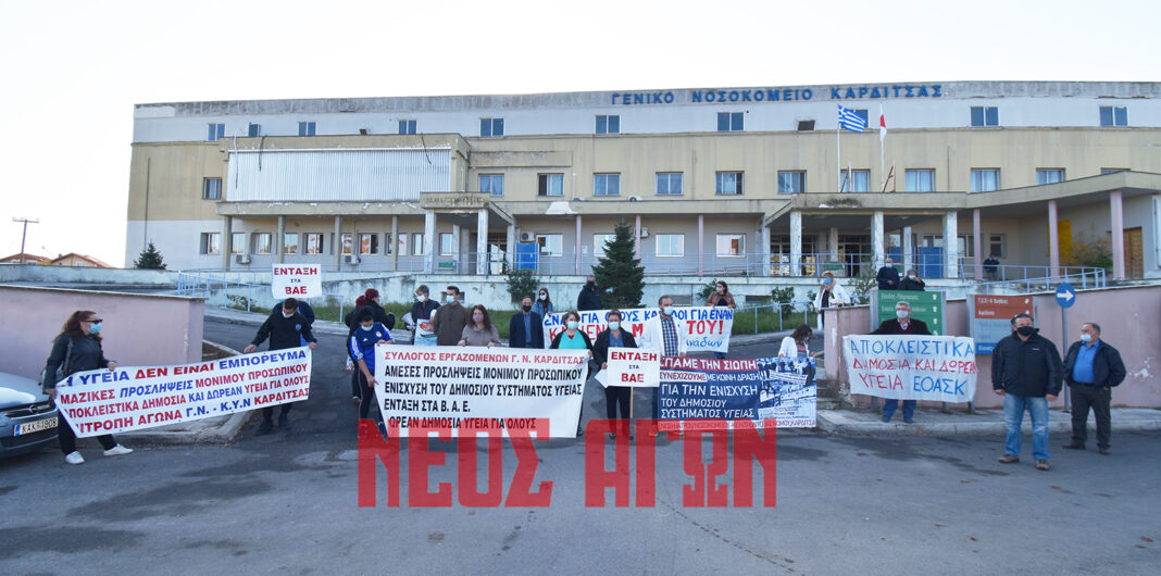 Παράσταση διαμαρτυρίας στην πύλη του Νοσοκομείου πραγματοποίησαν το πρωί οι γιατροί και οι εργαζόμενοι στο πλαίσιο της πανελλαδικής δράσης για την υγεία, με τη συμπαράσταση φορέων και συλλόγων της περιοχής.