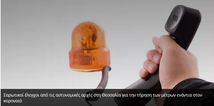 Ο μηνιαίος απολογισμός της δραστηριότητας των υπηρεσιών της Γενικής Περιφερειακής Αστυνομικής Διεύθυνσης Θεσσαλίας αποκαλύπτει σαρωτικούς ελέγχους των αστυνομικών αρχών για την τήρηση των μέτρων ενάντια στον CONID-19 που αφορούν κυρίως στη χρήση μάσκας και στις άσκοπες μετακινήσεις.