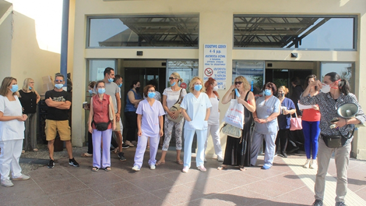 Νέα συγκέντρωση διαμαρτυρίας διοργάνωσε η Επιτροπή Αγώνα εργαζομένων στο Πανεπιστημιακό Νοσοκομείο Λάρισας κατά του υποχρεωτικού εμβολιασμού. Στο πλαίσιο της συγκέντρωση που έγινε στην είσοδο του ΠΓΝΛ συζητήθηκαν προτάσεις για την πορεία των κινητοποιήσεων, τόσο συνδικαλιστικά όσο και νομικά, ενάντια στο μέτρο της διαθεσιμότητας των υγειονομικών υπαλλήλων που δεν συμφωνούν με τον υποχρεωτικό εμβολιασμό.