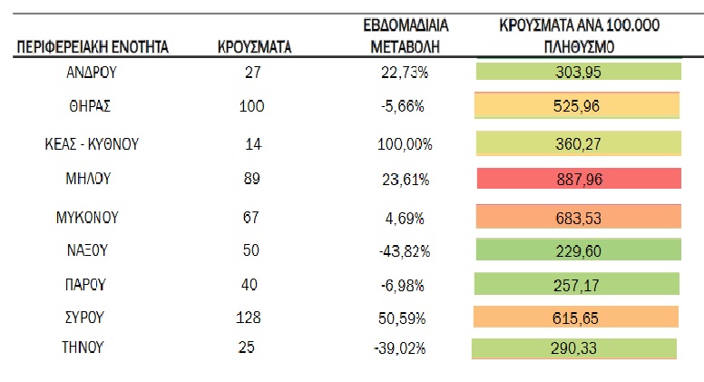 Τα στοιχεία που παρουσιάζονται αφορούν περιστατικά από την επιδημιολογική επιτήρηση της νόσου από το νέο κορωνοϊό (COVID-19). Τα δεδομένα αφορούν την εβδομάδα αναφοράς ISO 41/2022 (10 Οκτωβρίου 2022 – 16 Οκτωβρίου 2022).