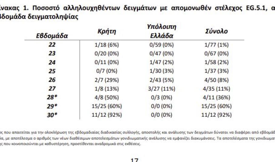 Μάλιστα την προηγούμενη εβδομάδα η Έριδα αντιστοιχούσε σε 11 από τα 12 δείγματα που εξετάστηκαν στην Κρήτη.