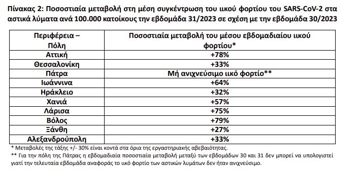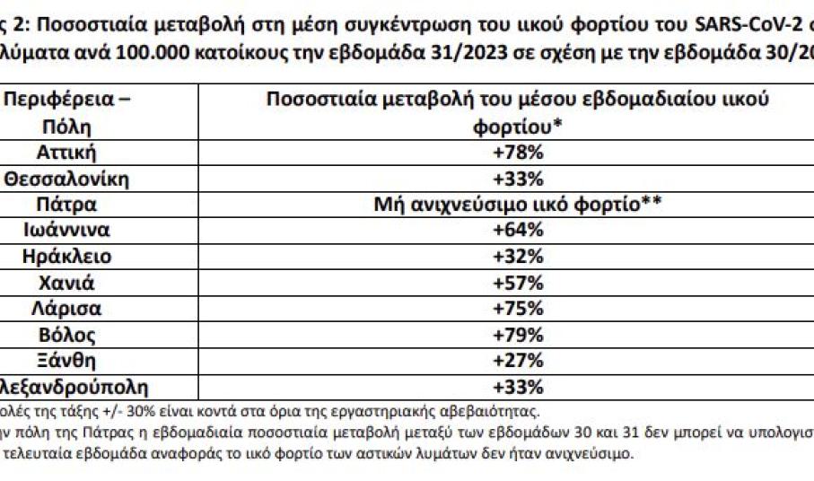 Το ιικό φορτίο παρουσιάζει αύξηση στα λύματα των 9 από τις 10 πόλεις που εξετάζονται.