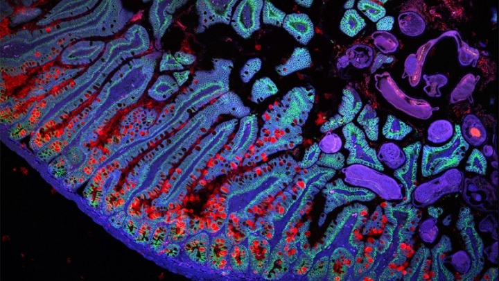 * Στη φωτογραφία αποτυπώνεται το λεπτό έντερο. Credit: Grace Burgin, Noga Rogel & Moshe Biton, Klarman Cell Observatory, Broad Institute