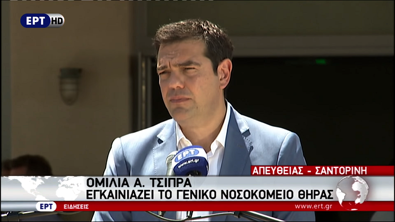 Ο πρωθυπουργός τόνισε, πως «το “στολίδι” που βλέπετε πίσω σας, είναι εδώ και πέντε περίπου χρόνια έτοιμο, να στεγάσει τις υπηρεσίες, με σύγχρονες δομές, ενός πολύ σημαντικού νοσοκομείου, για τη Σαντορίνη και τα γύρω νησιά. Παρ’ όλα αυτά, εδώ και πέντε χρόνια παρέμεινε κλειδωμένο, αραχνιασμένο, με το μηχανολογικό εξοπλισμό να σκουριάζει. Εδώ και 5 χρόνια, λουκέτο. Γιατί άραγε; Θα σας το πω έξω απ’ τα δόντια. Γιατί δεν υπήρξε η πολιτική βούληση να προχωρήσει αυτό το έργο, που τόσο ανάγκη το έχει η τοπική κοινωνία».