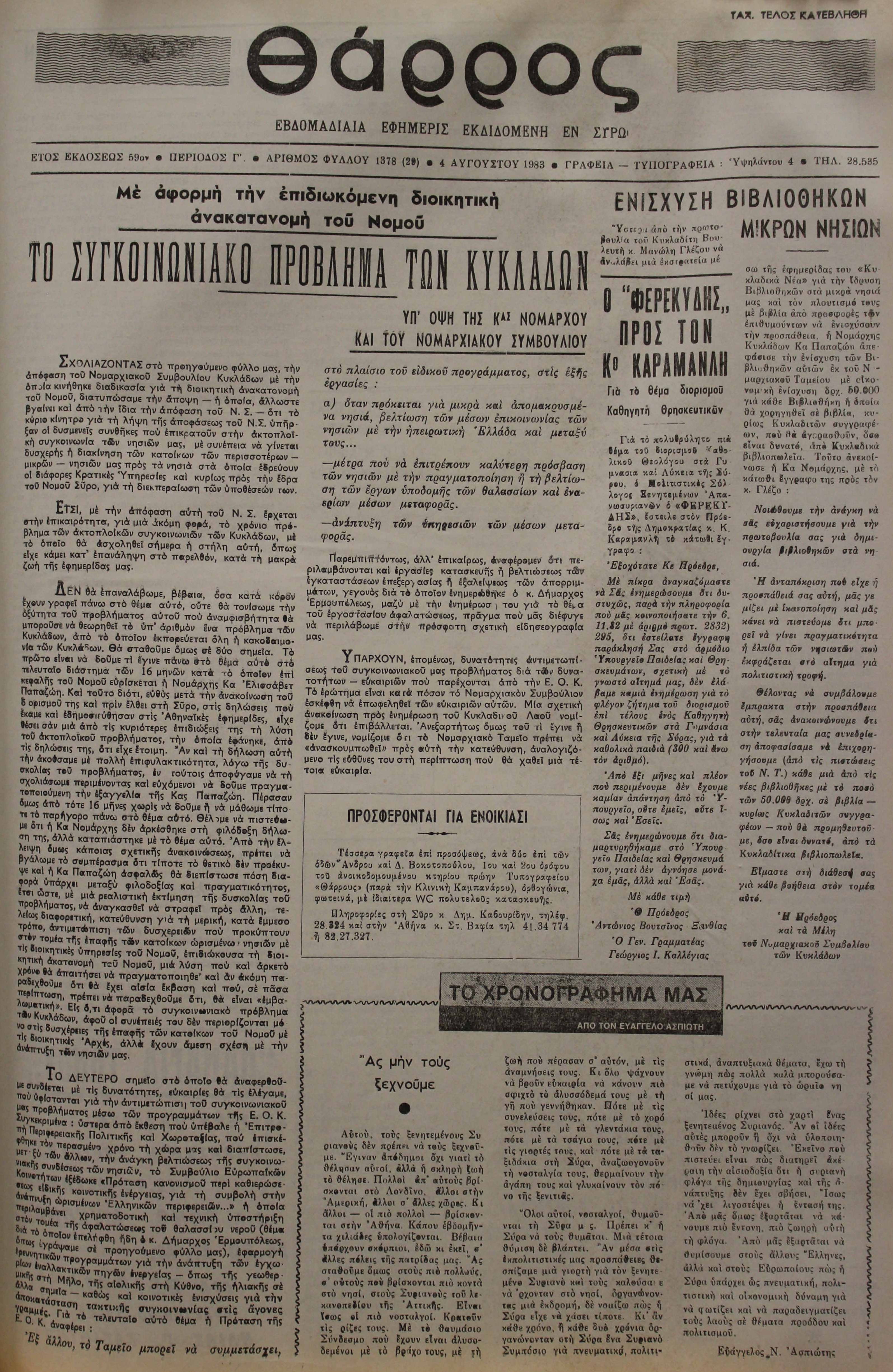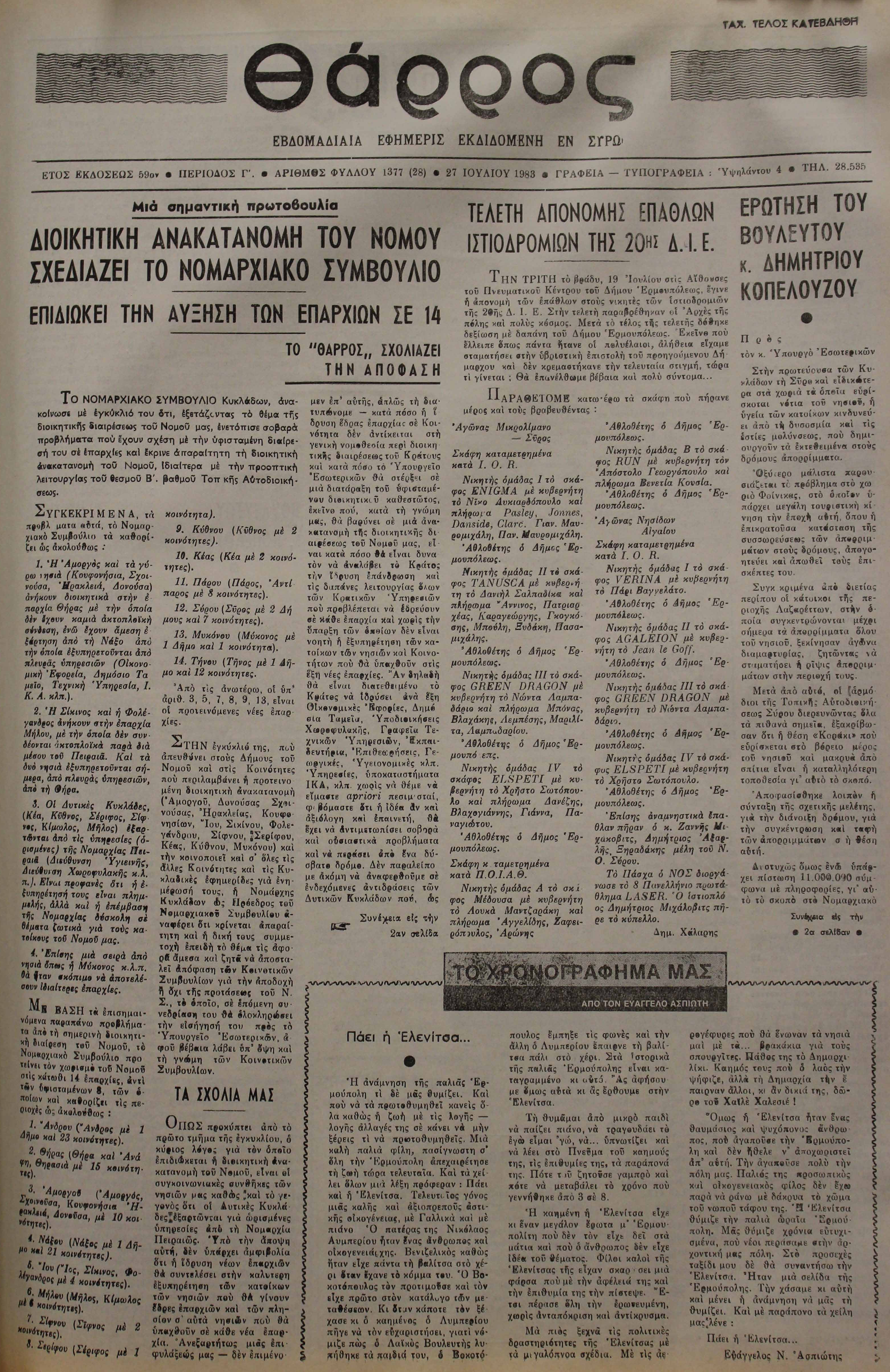 ΚΟΙΝΗ ΓΝΩΜΗ ΚΟΙΝΗ ΓΝΩΜΗ Ημερησια Εφημεριδα των Κυκλαδων