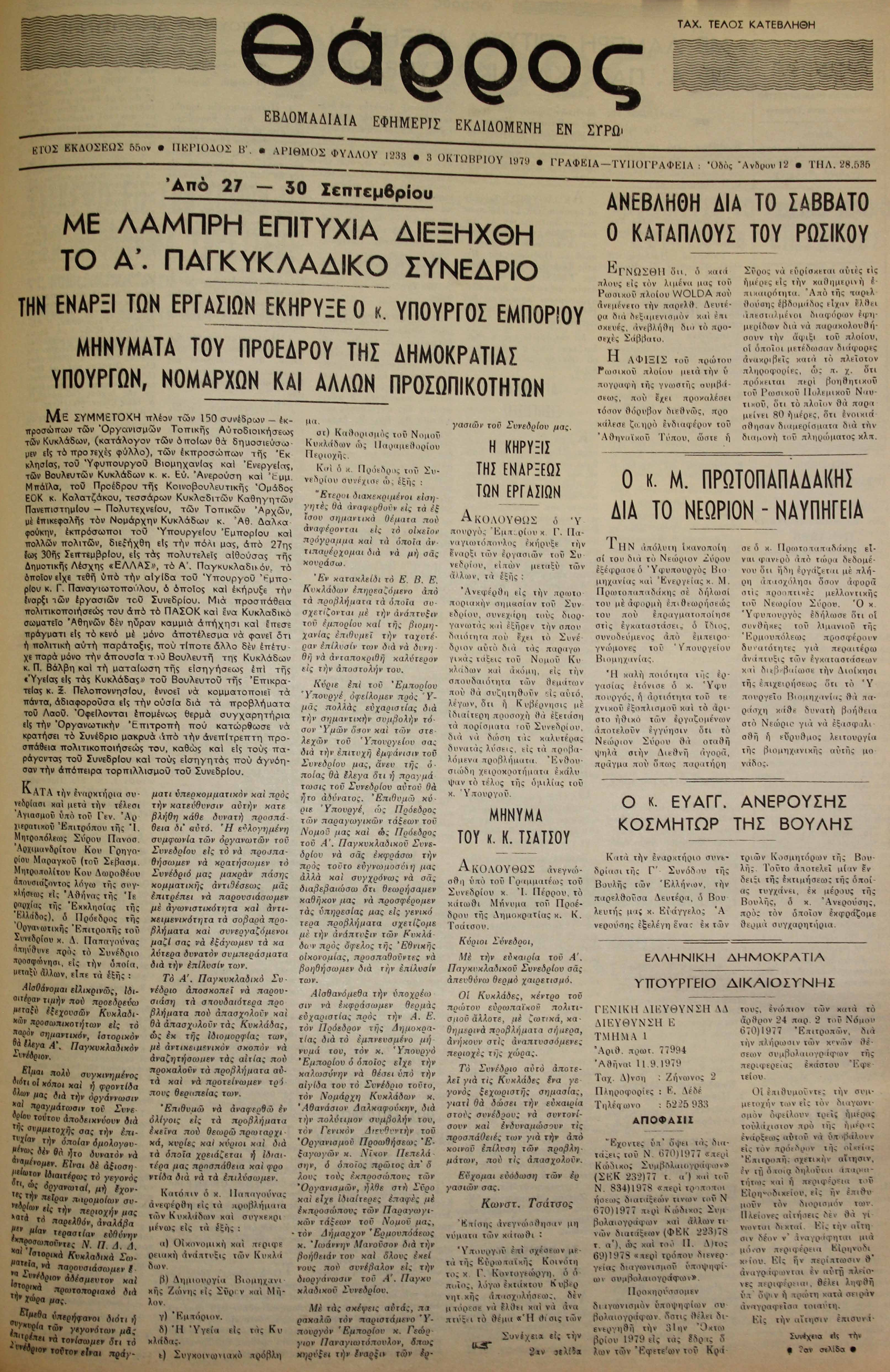 ΚΟΙΝΗ ΓΝΩΜΗ ΚΟΙΝΗ ΓΝΩΜΗ Ημερησια Εφημεριδα των Κυκλαδων