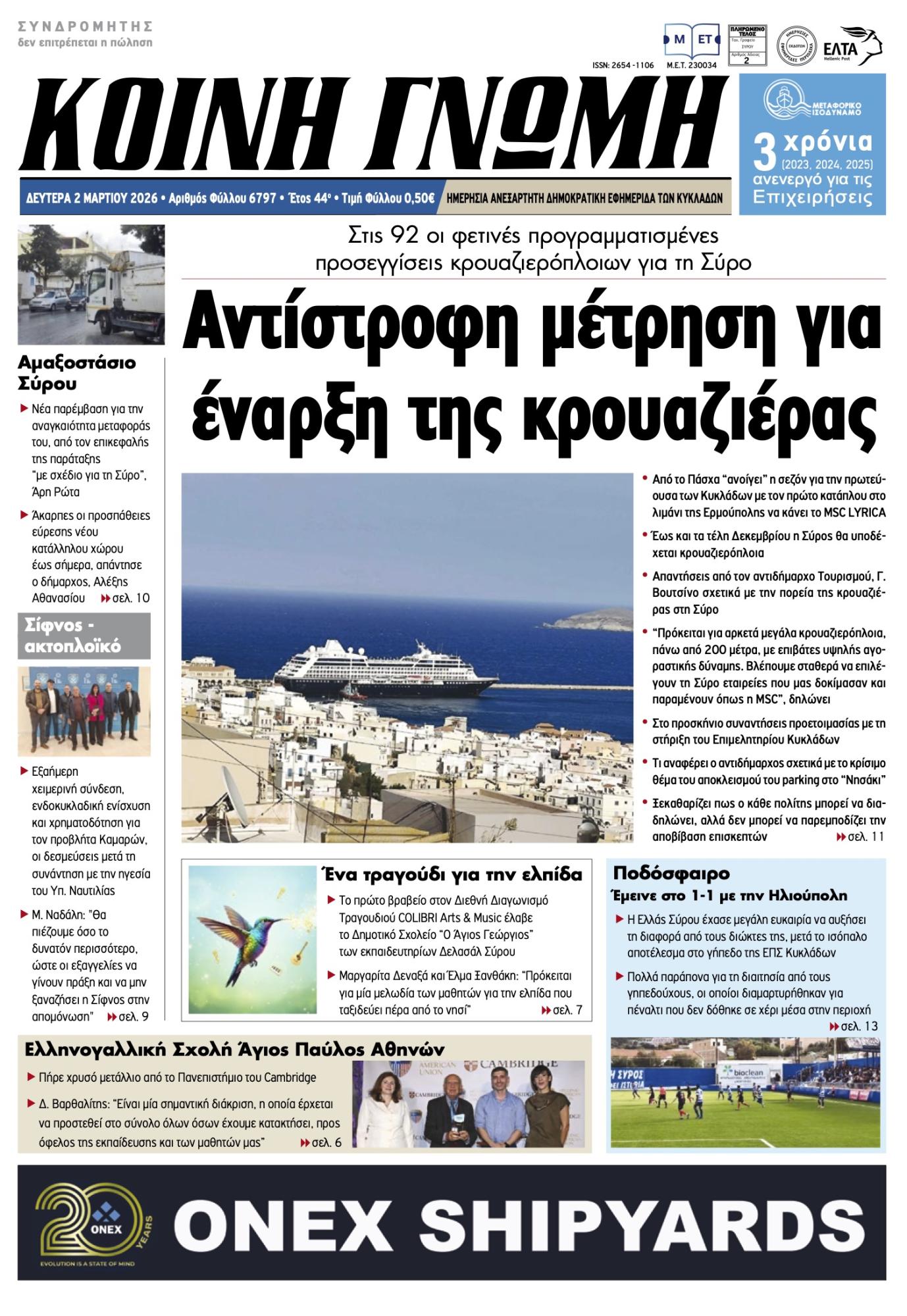 ΚΟΙΝΗ ΓΝΩΜΗ ΚΟΙΝΗ ΓΝΩΜΗ Ημερησια Εφημεριδα των Κυκλαδων
