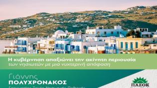 Σφοδρή κριτική στην κυβέρνηση ασκεί ο Τομεάρχης Νησιωτικής Πολιτικής του ΠΑΣΟΚ, Γιάννης Πολυχρονάκος, με αφορμή την αιφνίδια εφαρμογή Προεδρικού Διατά...