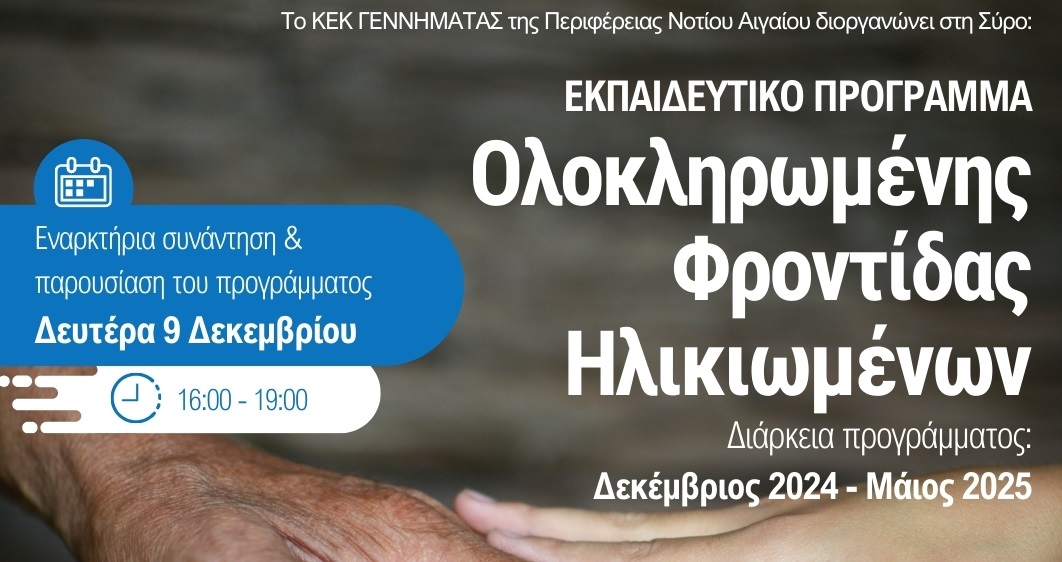 ΚΕΚ ΓΕΝΝΗΜΑΤΑΣ: Πρόγραμμα στη Σύρο για εκπαίδευση ατόμων σχετικά με φοντίδα ηλικιωμένων