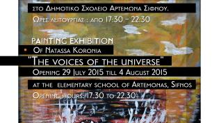Στο πλαίσιο των πολιτιστικών εκδηλώσεων Σίφνου 2015 εγκαινιάζεται την Πέμπτη 29 Ιουλίου, στις 20.00, η έκθεση ζωγραφικής «Οι φωνές του Σύμπαντος» της...