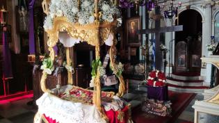 Μεγαλοπρέπεια και κατάνυξη στους ναούς της Σύρου σήμερα, Μεγάλη Παρασκευή, όπου από το πρωί κάτοικοι και εκατοντάδες επισκέπτες του νησιού συρρέουν πρ...