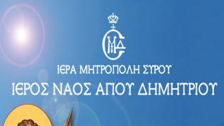 Ὁ Μητροπολίτης Σύρου Δωρόθεος Β΄ ἀνακοινώνει στούς εὐσεβεῖς Χριστιανούς τῆς Σύρου ὅτι η 89η Επέτειος της ευρέσεως της ιερής εικόνας Αγίου Δημητρίου (2...