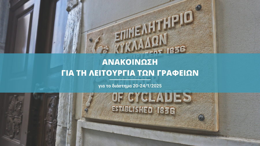 Επιμελητήριο Κυκλάδων: Κλειστά τα γραφεία για το διάστημα 20 - 24/1