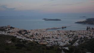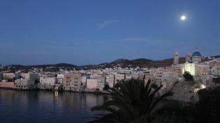 Άποψις της Ερμούπολης. Σούρουπο από Αγ. Παρασκευή Καλούδης Κώστας