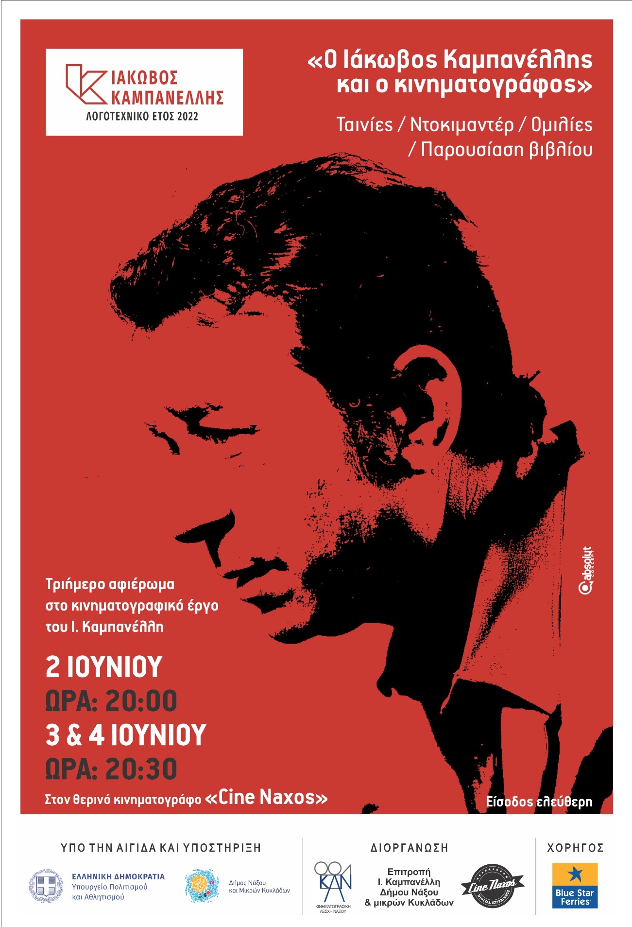 "Ο Ιάκωβος Καμπανέλλης και ο κινηματογράφος", 2-4 Ιουνίου 2022, στον θερινό Κινηματογράφο “Cine Naxos”. Τριήμερο αφιέρωμα στο κινηματογραφικό έργο τ...